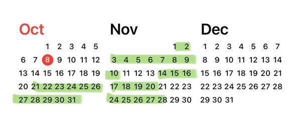My availability for the rest of 2025: